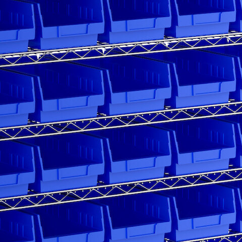 The included high-density, injection-molded shelf bins are designed to withstand the rigors of industrial environments, feature a highly durable polypropylene construction with reinforced edges, and are impervious to most chemicals.
