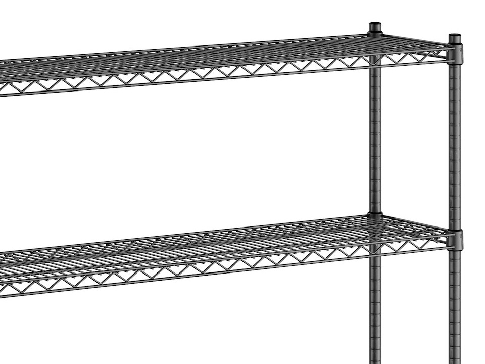 Each shelf features a wire construction, which allows for proper air flow around the stored supplies, products, or ingredients, and each shelf accommodates up to 600 lb. of evenly distributed weight.
