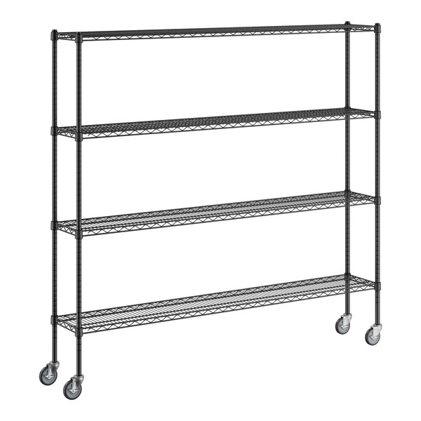Regency 12" x 72" x 70" NSF Black Epoxy 4-Shelf Kit with Casters