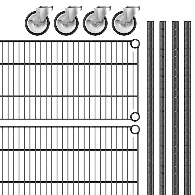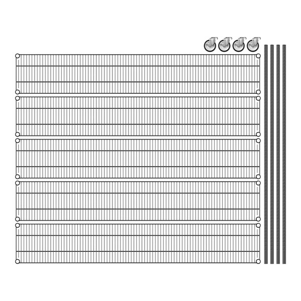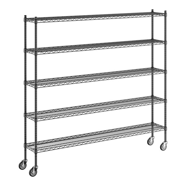 Keep your storage area organized with this Regency NSF black epoxy mobile wire shelving starter kit with 5 shelves.