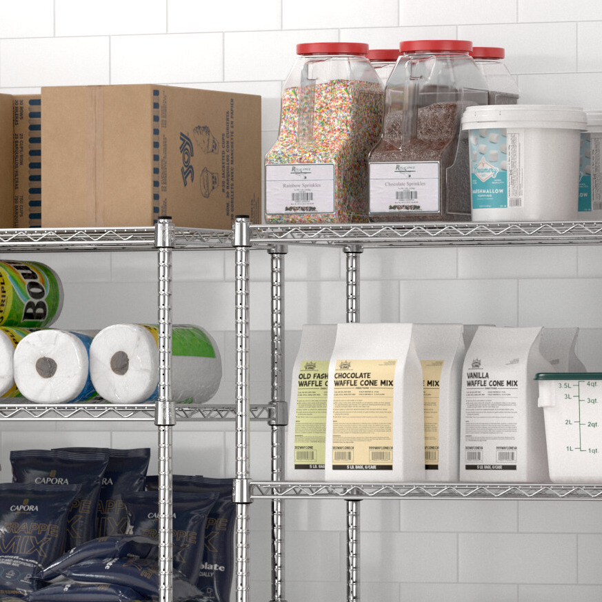 Each shelf features a wire construction, which allows for proper air flow around the stored supplies, products, or ingredients, and each shelf accommodates up to 700 lb. of evenly distributed weight. Plus, this unit's high-quality design is commercial-grade and delivers the reliable performance every business expects and needs.