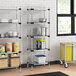 Crafted from durable 18-gauge galvanized steel, this shelving unit is built to last in busy commercial environments. Each shelf can accommodate up to 600 lb. of evenly distributed weight, making it perfect for storing a variety of items such as spices, small kitchen appliances, cleaning supplies, or ingredients. The raised edges on the shelves help keep stored items contained, preventing messes from spills or leaks.