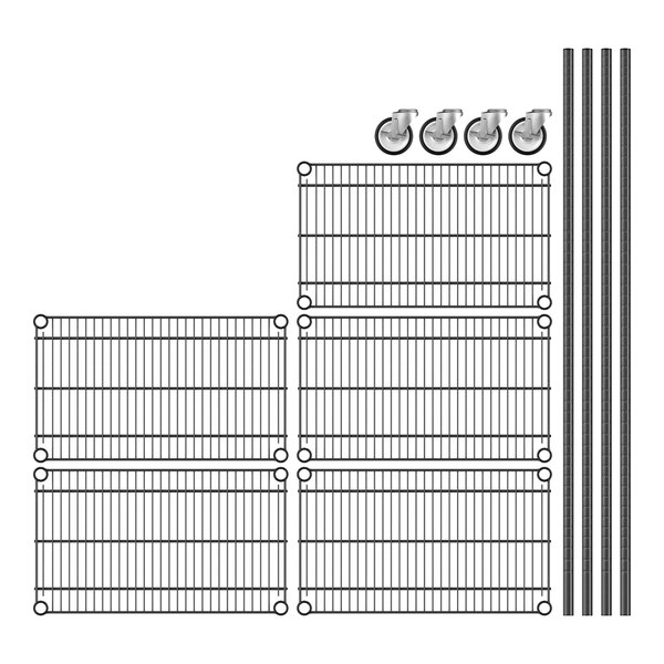 View All ItemsKeep your storage area organized with this Regency 14" NSF black epoxy mobile wire shelving starter kit with 5 shelves!