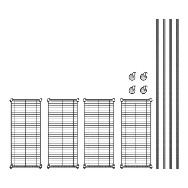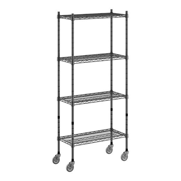 Regency 460B1430KM64 14" x 30" NSF Black Epoxy 4-Shelf Starter Kit with 64" Posts and Casters