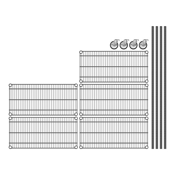 View All ItemsKeep your storage area organized with this Regency 14" NSF black epoxy mobile wire shelving starter kit with 5 shelves!