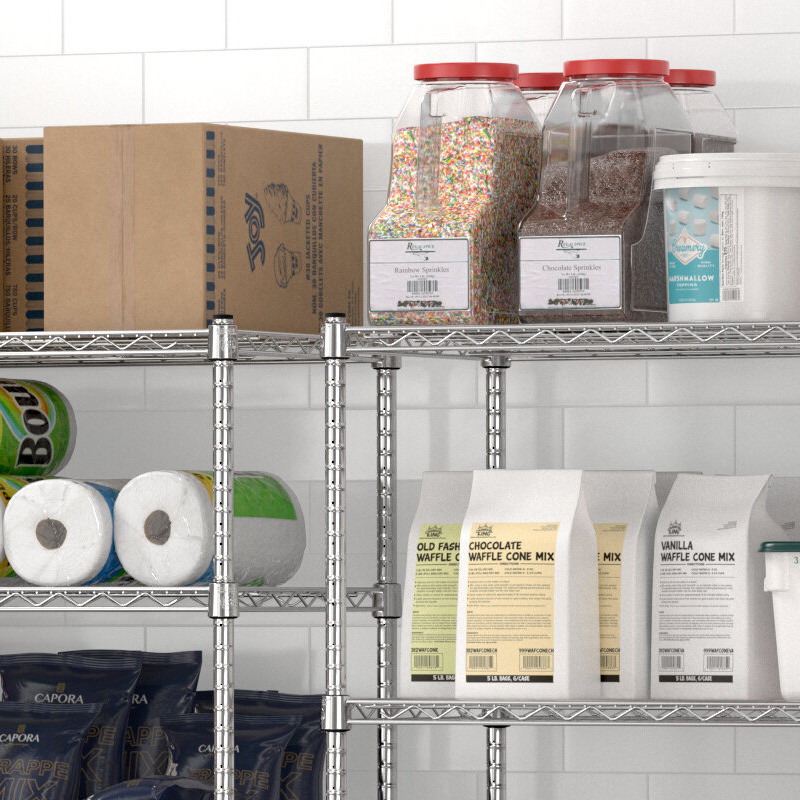 Each shelf features a wire construction, which allows for proper air flow around the stored supplies, products, or ingredients, and each shelf accommodates up to 700 lb. of evenly distributed weight. Plus, this unit's high-quality design is commercial-grade and delivers the reliable performance every business expects and needs.