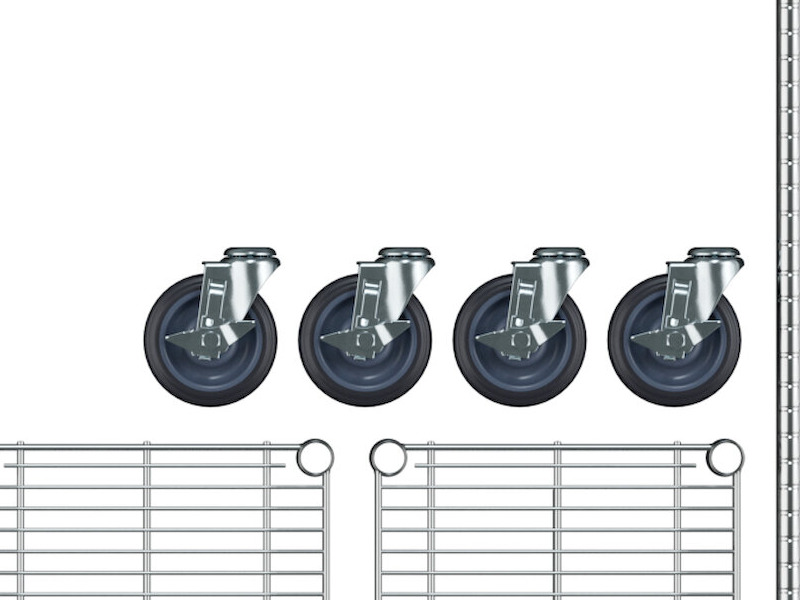 This kit includes (4) 64" mobile posts, (4) 14" x 30" shelves, and (16) pairs of split sleeves. This versatile unit allows you to create a convenient storage solution for your janitorial closet, warehouse, or walk-in cooler. This unit requires assembly.