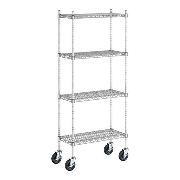 Regency Spec Line 14" x 30" x 70" NSF Stainless Steel Wire Mobile Shelving Starter Kit with 4 Shelves