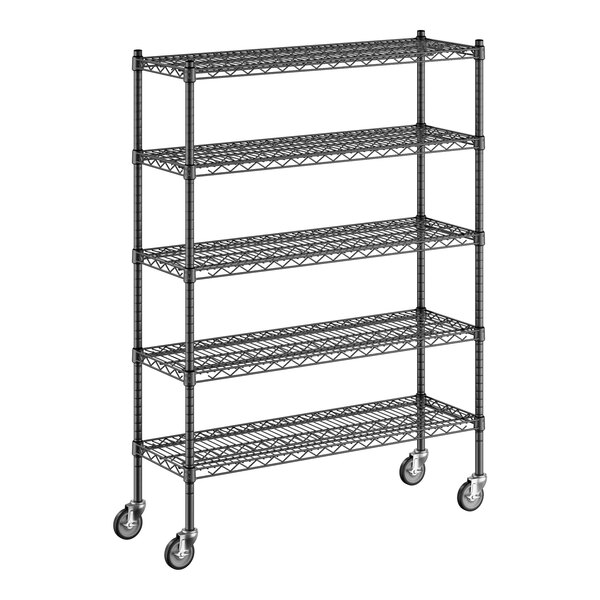 View All ItemsKeep your storage area organized with this Regency 14" NSF black epoxy mobile wire shelving starter kit with 5 shelves!