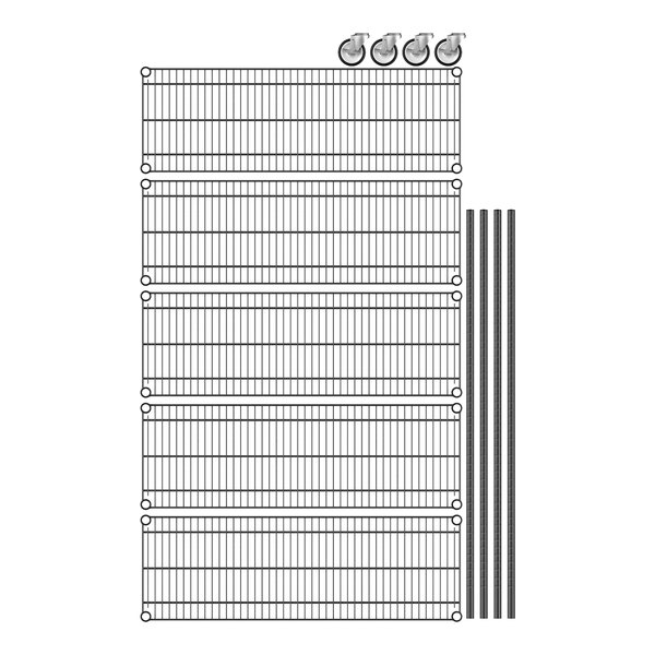 - Item #: 460b1442km55Regency 14" x 42" x 60" NSF Black Epoxy Mobile Wire Shelving Starter Kit with 5 Shelves