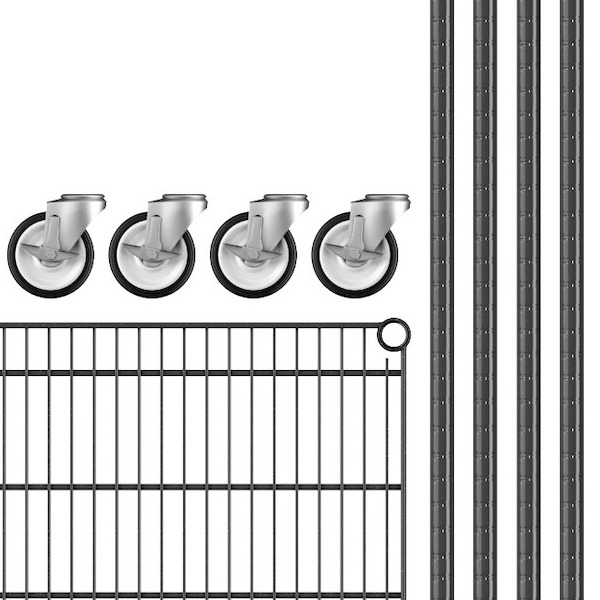 View All ItemsKeep your storage area organized with this Regency 14" NSF black epoxy mobile wire shelving starter kit with 4 shelves.