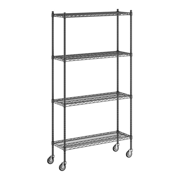 - Item #: 460b1442km74Regency 14" x 42" x 80" NSF Black Epoxy Mobile Wire Shelving Starter Kit with 4 Shelves