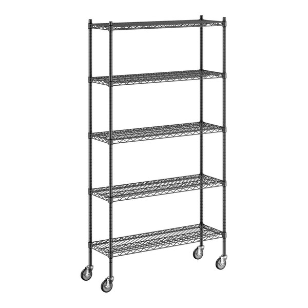 View All ItemsKeep your storage area organized with this Regency 14" NSF black epoxy mobile wire shelving starter kit with 5 shelves!