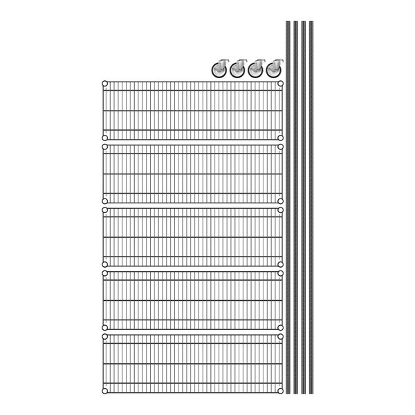 View All ItemsKeep your storage area organized with this Regency 14" NSF black epoxy mobile wire shelving starter kit with 5 shelves!