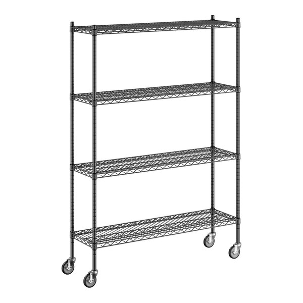 Regency 460B1448KM64 14" x 48" NSF Black Epoxy 4-Shelf Starter Kit with 64" Posts and Casters