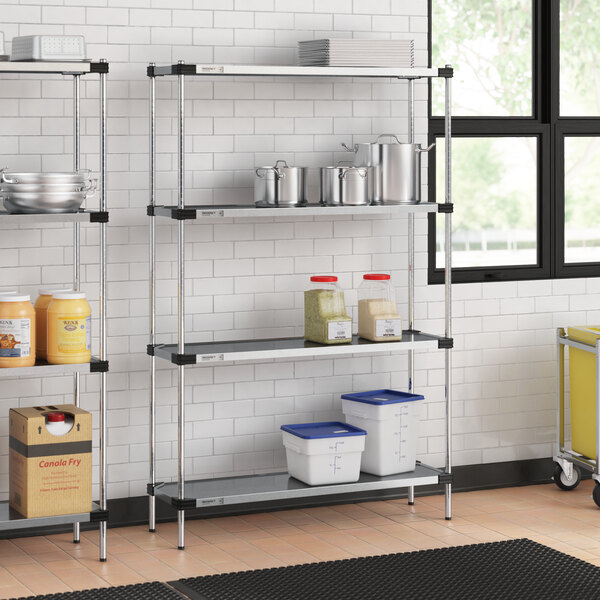 This reliable and versatile unit boasts a durable construction, allowing you to store your essential products with peace of mind. Plus, assembly is fast and easy, so you can start using the shelving unit quickly. Whether you're in a kitchen, retail, or industrial environment, this shelving unit is a reliable and efficient storage solution.