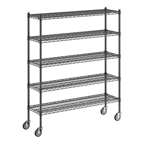 - Item #: 460b1448km55Regency 14" x 48" x 60" NSF Black Epoxy Mobile Wire Shelving Starter Kit with 5 Shelves