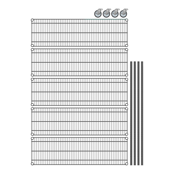 View All ItemsKeep your storage area organized with this Regency 14" NSF black epoxy mobile wire shelving starter kit with 5 shelves!