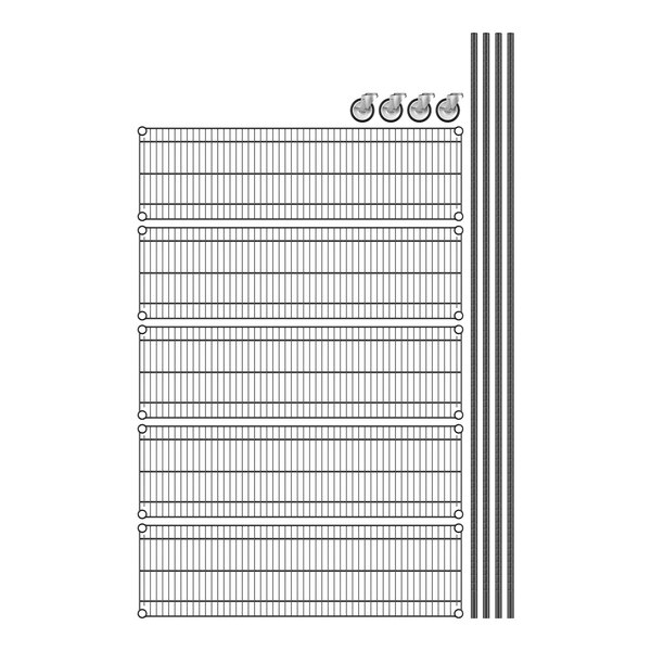 View All ItemsKeep your storage area organized with this Regency 14" NSF black epoxy mobile wire shelving starter kit with 5 shelves!