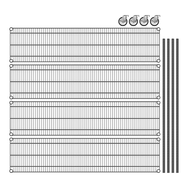 View All ItemsKeep your storage area organized with this Regency 14" NSF black epoxy mobile wire shelving starter kit with 4 shelves!