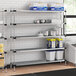 Crafted from durable 18-gauge galvanized steel, this shelving unit is built to last in busy commercial environments. Each shelf can accommodate up to 450 lb. of evenly distributed weight, making it perfect for storing a variety of items such as spices, small kitchen appliances, cleaning supplies, or ingredients. The raised edges on the shelves help keep stored items contained, preventing messes from spills or leaks.