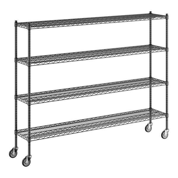 - Item #: 460b1472km54Regency 14" x 72" x 60" NSF Black Epoxy Mobile Wire Shelving Starter Kit with 4 Shelves