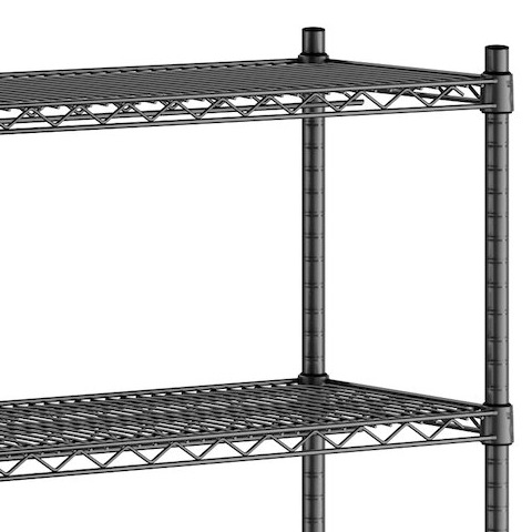 Each shelf features a wire construction, which allows for proper airflow around the stored supplies, products, or ingredients, and each shelf accommodates an ample amount of evenly distributed weight. For your convenience, the shelves are also adjustable and can be moved higher or lower along the posts.