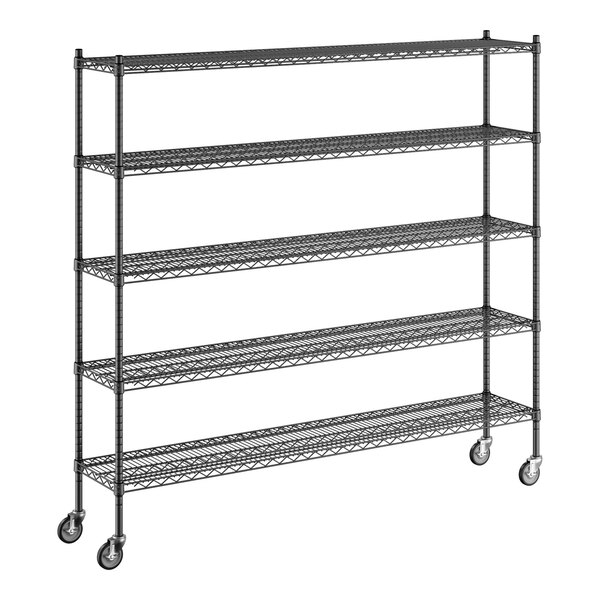 Regency 14" x 72" x 70" NSF Black Epoxy Mobile Wire Shelving Starter Kit with 5 Shelves