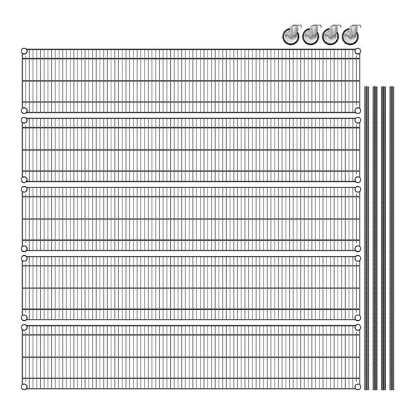 View All ItemsKeep your storage area organized with this Regency 14" NSF black epoxy mobile wire shelving starter kit with 5 shelves!