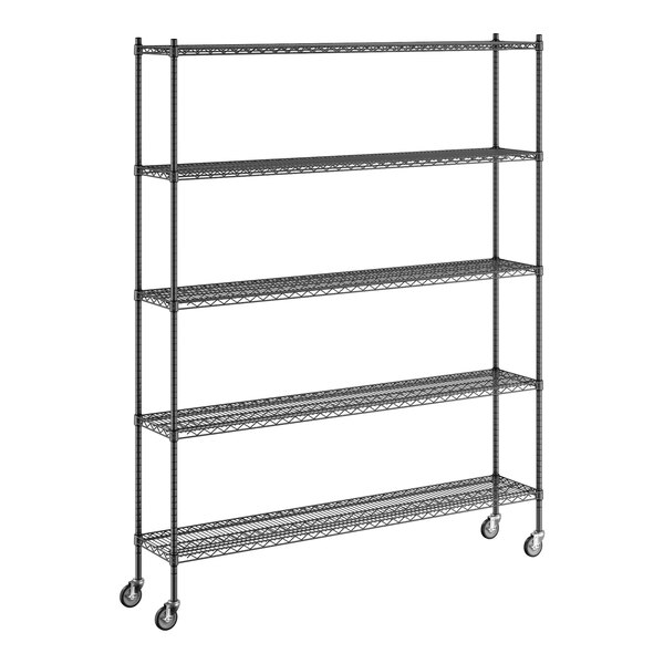 Regency 14" x 72" x 92" NSF Black Epoxy Mobile Wire Shelving Starter Kit with 5 Shelves