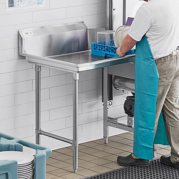 Having somewhere to place clean dishes on a rack right after they come out of the dishwasher is essential to any dishwashing operation. This unit not only gives clean dishes a place to rest as they begin drying but also helps to keep excess water off the floors, creating a safe area of operation during your busiest rushes. This table comes with a left drainboard.