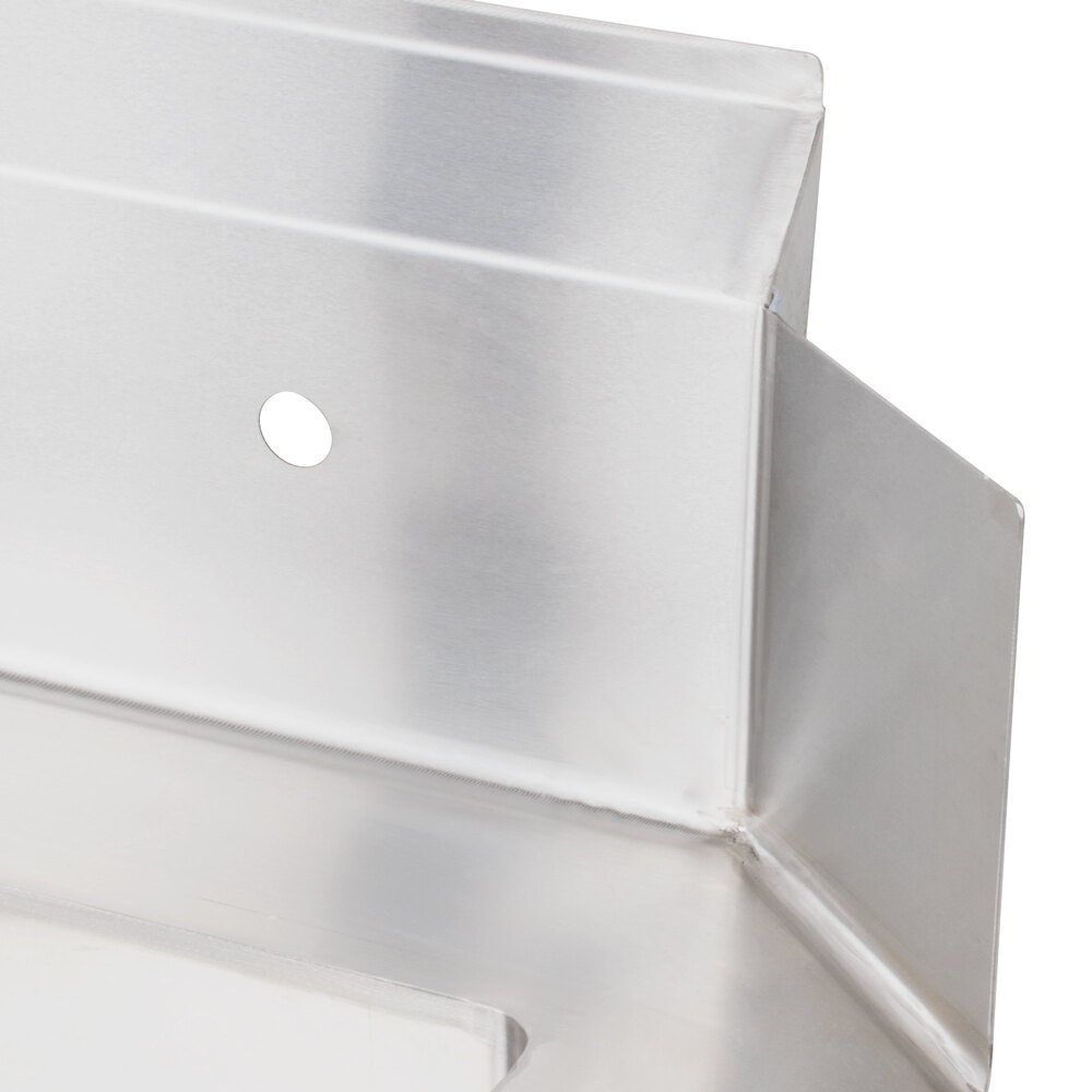 A 2" return at a 45-degree angle allows for excess water to train back into the sink.