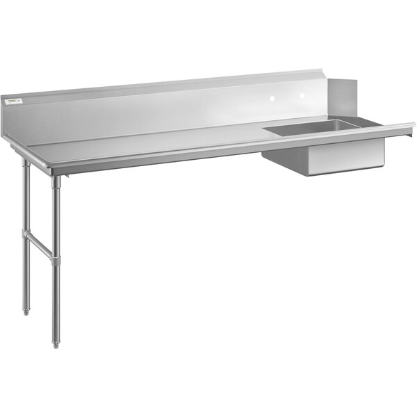 This Regency 7' soiled / dirty dish table provides your dishwashing station with an appropriate place to stack your dirty dishes before they go through the wash cycle. It's perfect for restaurants, cafes, and hotels! This table features a left drainboard.