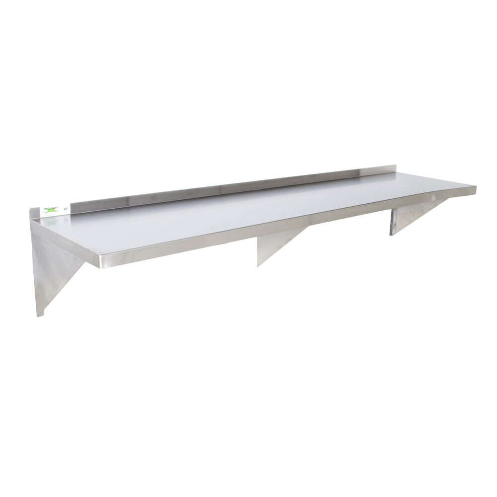 Keep food, dishes, or other small items from cluttering your work area with the Regency stainless steel heavy-duty wall shelf. Made with durable materials, this shelf is designed for use in the busiest restaurant, cafeteria, or other foodservice establishment. Because the support brackets attach directly to the walls, you can keep all your most used items within easy reach without taking up valuable counter space.