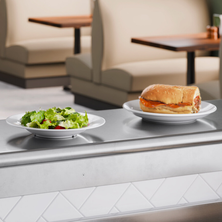 Its solid, flat surface is 18" wide, offering plenty of space for plates, bowls, and trays. Even during peak times, your service to tables can run smoothly thanks to this pass-through shelf.