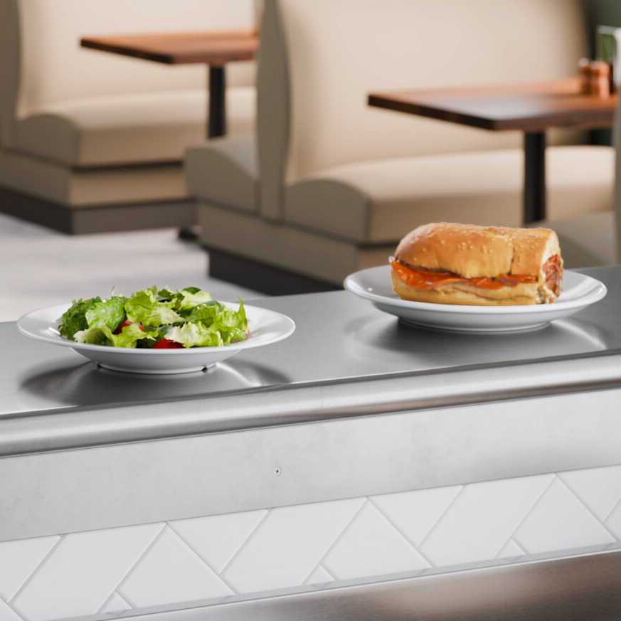 Its solid, flat surface is 18" wide, offering plenty of space for plates, bowls, and trays. Even during peak times, your service to tables can run smoothly thanks to this pass-through shelf.