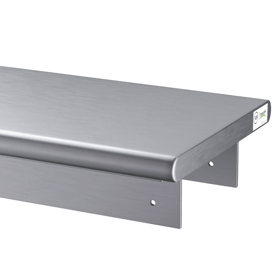 Because it is made of 16-gauge type 304 stainless steel, this shelf can be confidently installed in your kitchen without fear of rust or corrosion. It features 1 1/2" sanitary rolled front and back edges with square ends.