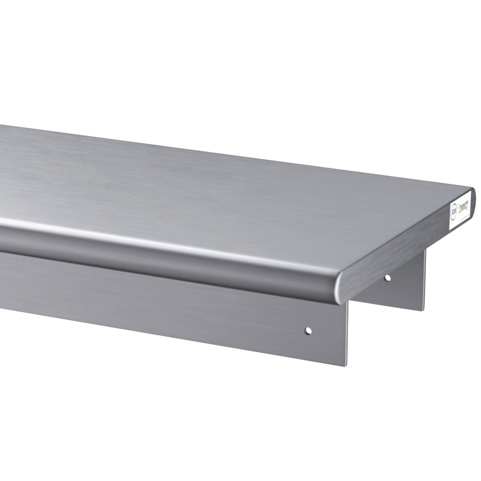 Because it is made of 16-gauge type 304 stainless steel, this shelf can be confidently installed in your kitchen without fear of rust or corrosion. It features 1 1/2" sanitary rolled front and back edges with square ends.