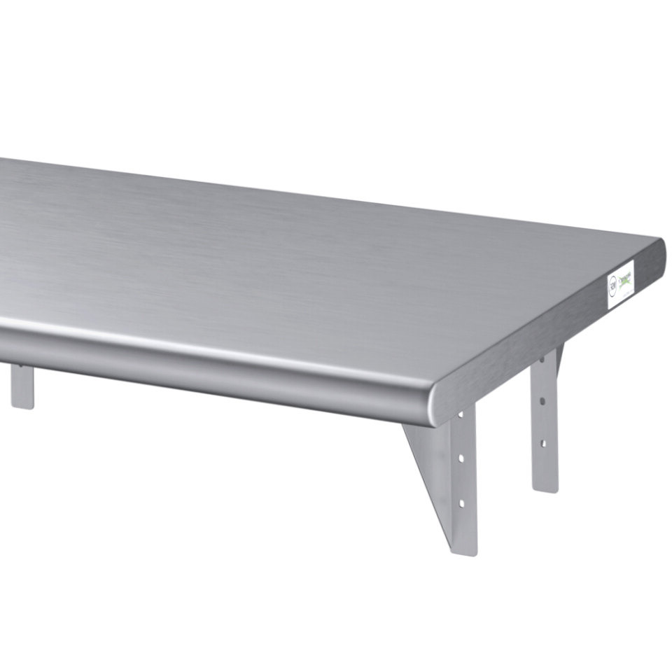 Because it is made of 16-gauge type 304 stainless steel, this shelf can be confidently installed in your kitchen without fear of rust or corrosion. It features 1 1/2" sanitary rolled front and back edges with square ends.