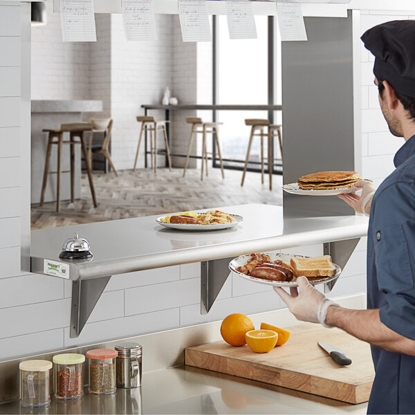 The solid, flat surface is 24" wide, ensuring your dishes, bowls, and trays will fit on the shelf securely. This shelf's durable and reliable design makes it the perfect addition to your kitchen that's sure to enhance your workflow and assist your employees.