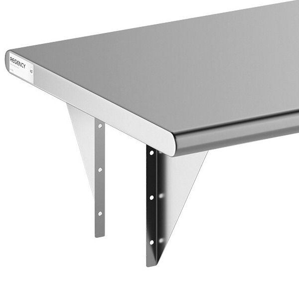 Because it is made of 16-gauge type 304 stainless steel, this shelf can be confidently installed in your kitchen without fear of rust or corrosion. It features 1 1/2" sanitary rolled front and back edges with square ends.