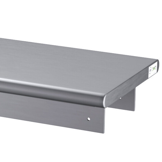 Because it is made of 16-gauge type 304 stainless steel, this shelf can be confidently installed in your kitchen without fear of rust or corrosion. It features 1 1/2" sanitary rolled front and back edges with square ends.