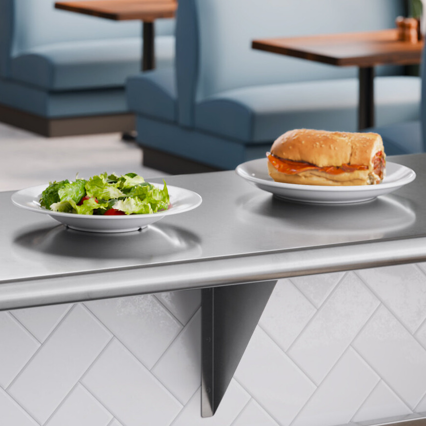 Designed for a wall that is 12 1/2” thick or less, this shelf includes 6 cantilever brackets to simplify installation and allow you to install the shelf where you want it. For added convenience, the hardware is included to mount the brackets to the shelf. The wall mounting hardware is sold separately. Designating an order pick-up area in your restaurant or cafe is easy with this Regency pass-through shelf!