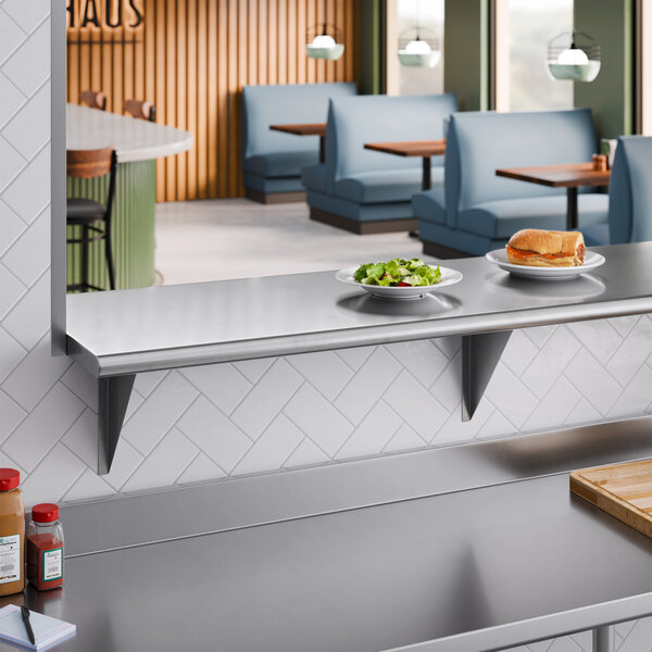 This shelf's durable and reliable design makes it the perfect addition to your kitchen that's sure to enhance your workflow and assist your employees. The classic stainless steel finish on this shelf and its sleek design make it an excellent option for your restaurant, ensuring that it will blend in with any decor.