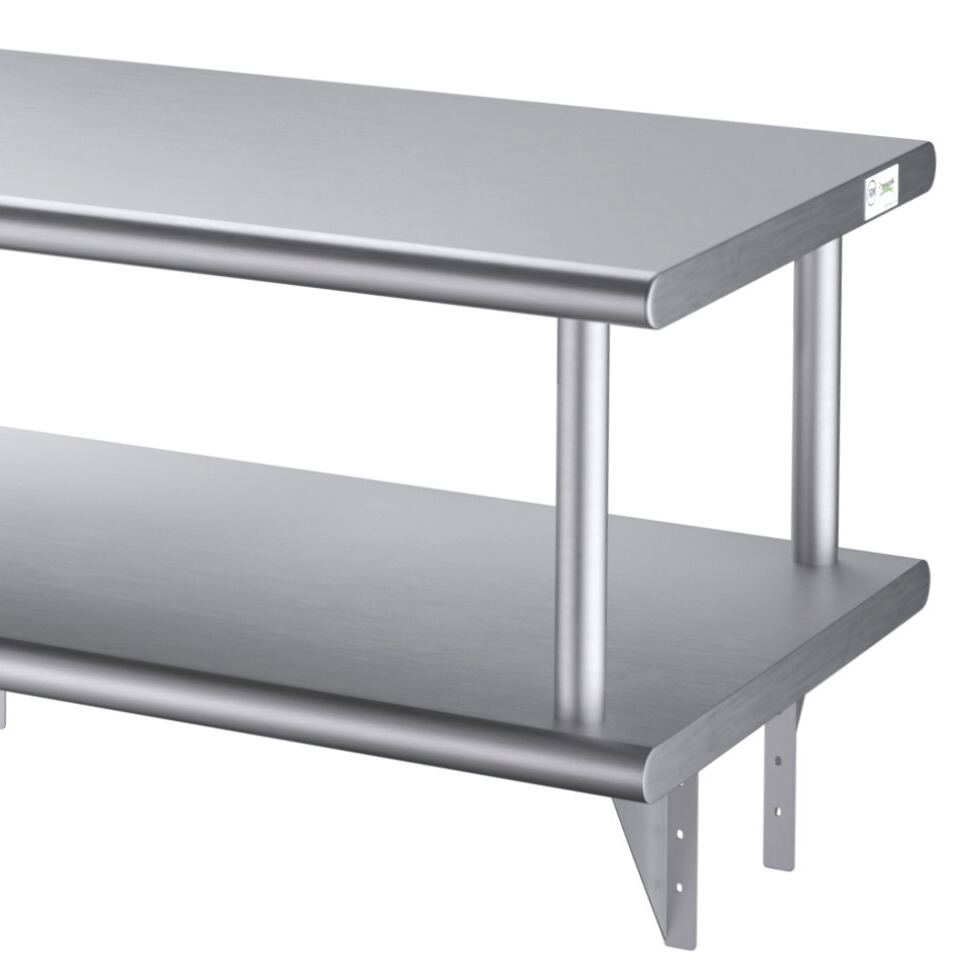 Because it is made of 16-gauge type 304 stainless steel, this shelf can be confidently installed in your kitchen without fear of rust or corrosion. It features 1 1/2" sanitary rolled front and back edges with square ends.
