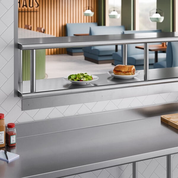 Since this shelf comes with both a pass-through shelf and an overshelf, it offers twice the amount of surface area. Its durable and reliable design makes it the perfect addition to your kitchen that's sure to enhance your workflow and assist your employees. The classic stainless steel finish and sleek design make it an excellent option for your restaurant, ensuring that it will blend in with any decor.