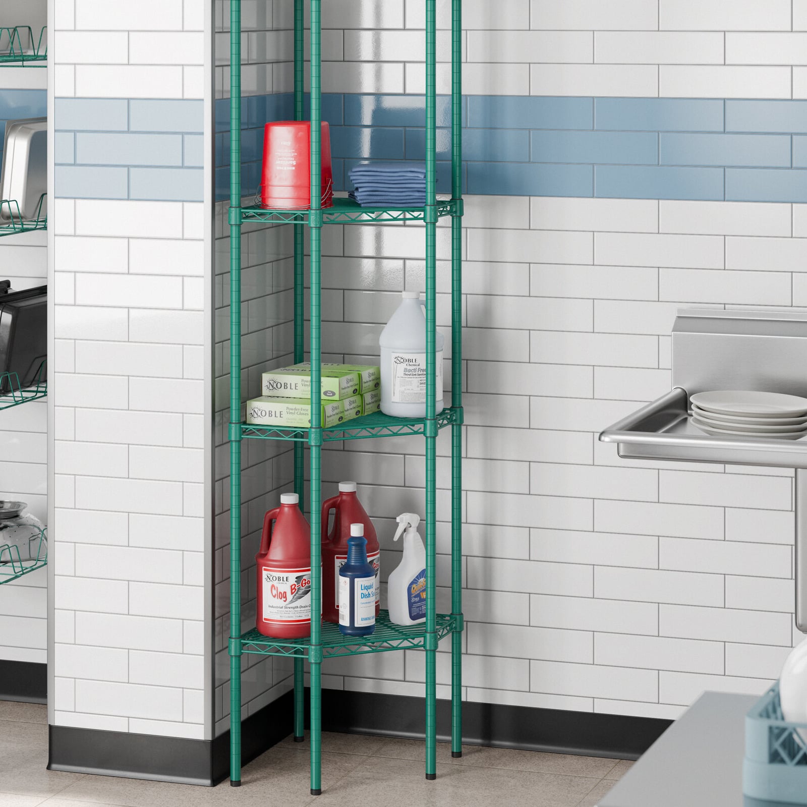 View All ItemsMake the most of your space with this Regency NSF green epoxy wire pentagon corner 4-shelf kit.