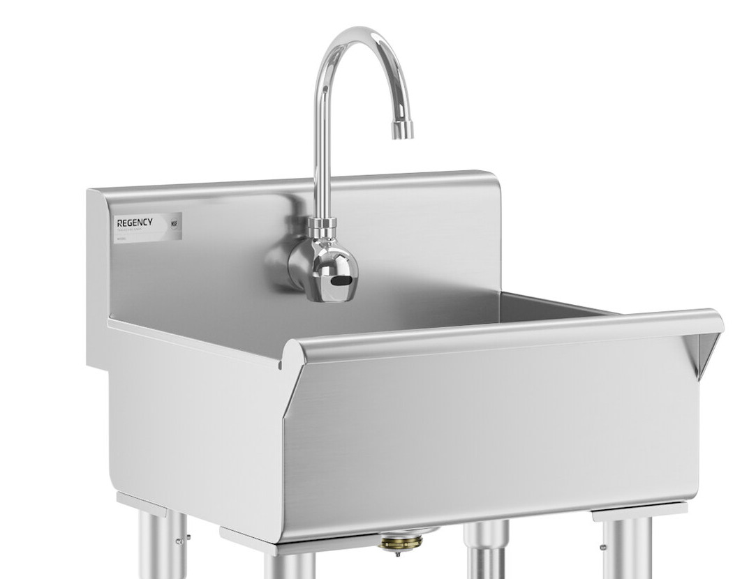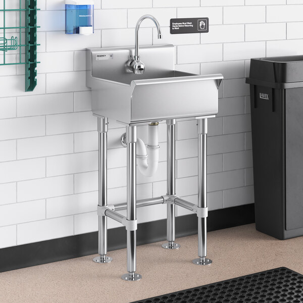 Maintain a sanitary environment in your restaurant, stadium, or manufacturing facility with this Regency single-hole multi-station hand sink with Waterloo faucet!
