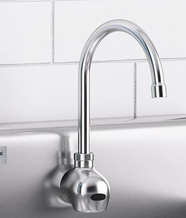 The solid chrome-plated brass faucet with a 6 3/16" gooseneck spout of this unit has an infrared proximity sensor with a 30-second timeout feature and an adjustable sensor range of 1"-8". Because a sensor activates the water flow, it has several advantages over a traditional handle-style faucet. It prevents the faucet from running when it's not needed, which helps to cut down on your water bill.