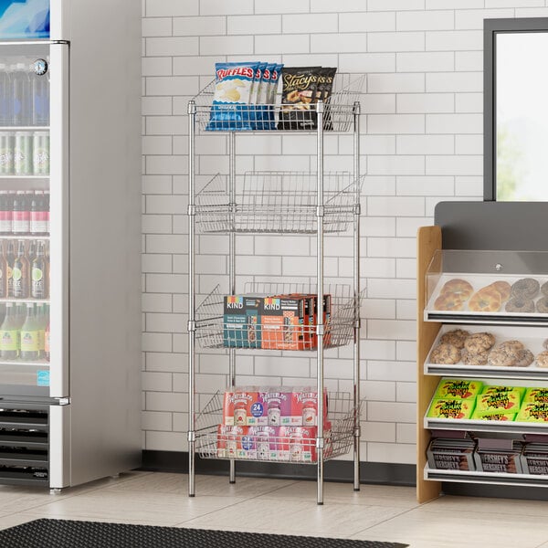 Regency 18" x 24" x 64" NSF Chrome Stationary 4 Basket Storage Display Stand